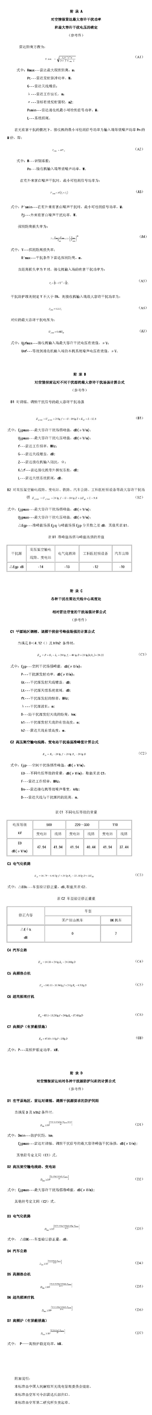 注:a.特殊情況下,按干擾防護準則的要求,參照有關附錄進行測算。
